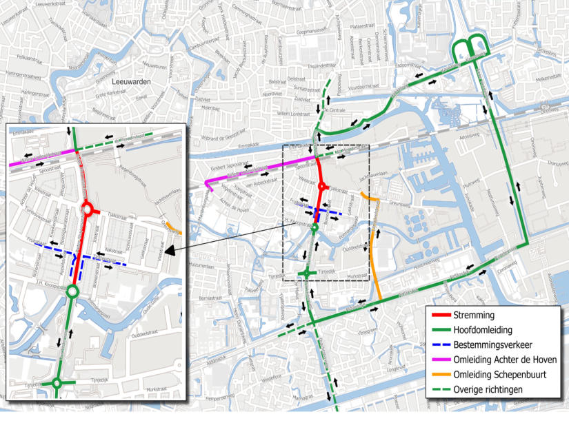 Overig verkeer wordt omgeleid via De Hemrik. De omleidingsroutes worden aangegeven met borden.